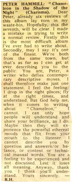 "...the most difficult album I've ever had to write about" - R.H. |