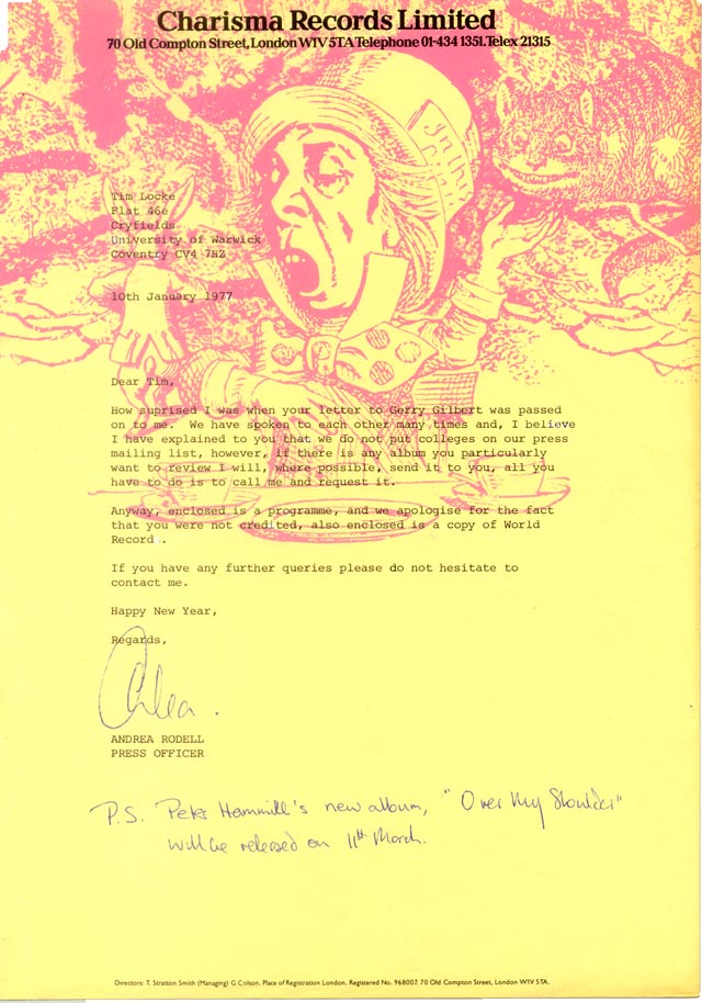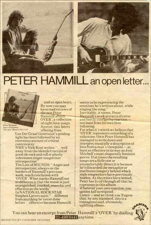 PETER HAMMILL an open letter... (Over advert) | ||||||||||||