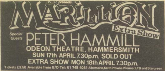 | 17th or 18th April 1983; Hammersmith Odeon, London (supporting Marillion).