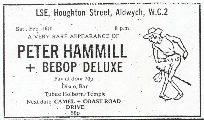 | 16th February 1974; London School of Economics (with Bebop Deluxe).