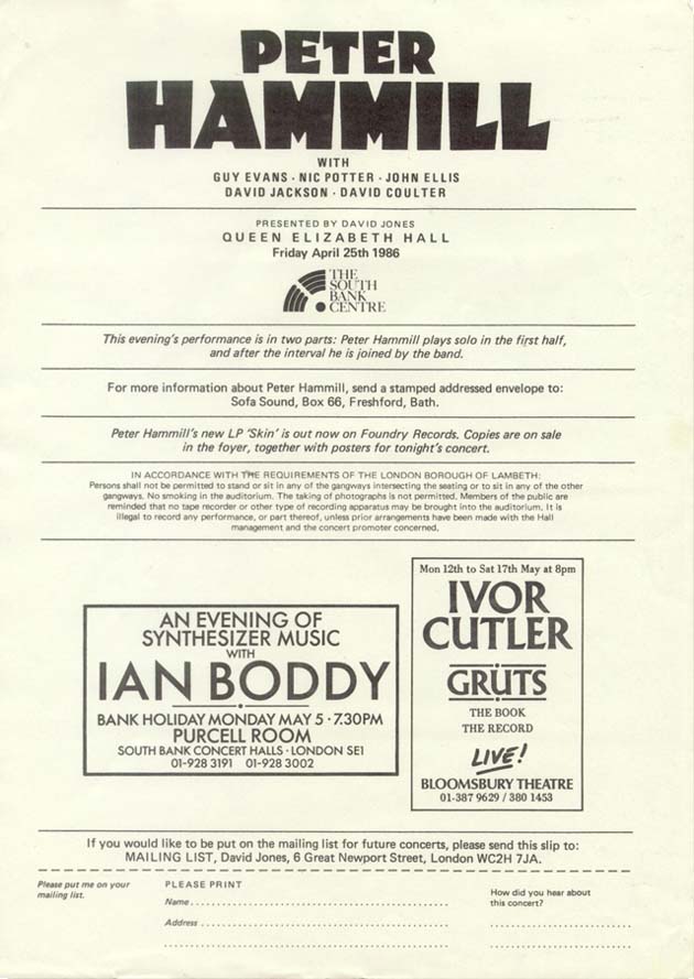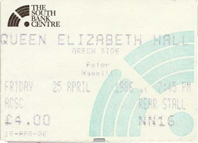 25th April 1986; Queen Elizabeth Hall, London. | ![]() |