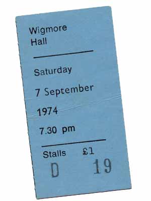 | 7th September 1974; Wigmore Hall, London.