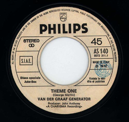 This, regrettably, is the only VdGG single that I bought at the time,