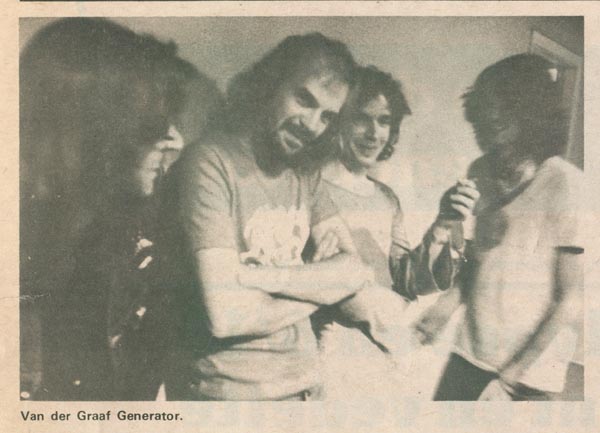 | 14/07/04 | Here's a picture of VdGG backstage during the Canada tour of 1976. The full Pop Rock article will appear shortly with a translation from French into English. Thanks Sean. |