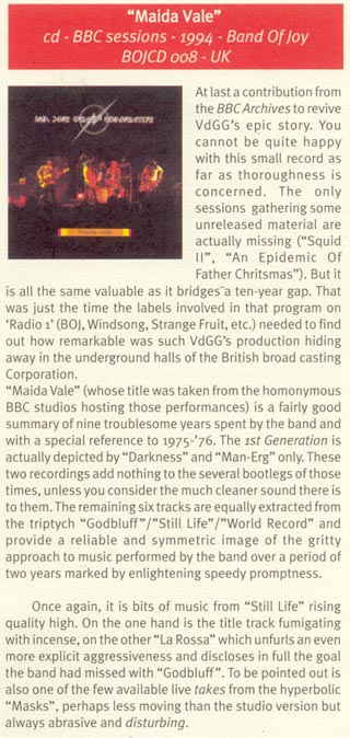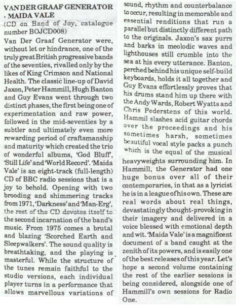 | The Magazine Mju:zik ran a feature on the band in February 1998 containing this piece about The Maida Vale CD. | ||