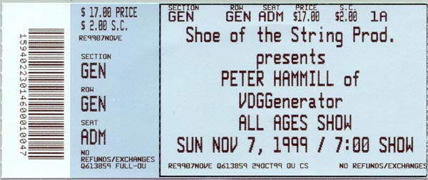 After much clapping and foot-stomping they came on again for another encore and PH launched into a story of how Tony Stratton-Smith, the former head of Charisma and Van der Graaf Generator's first manager would come backstage after a gig and with cigar in hand say "great show old boy but you really should have played...........Refugees"! YES!!